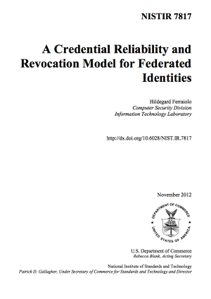 - NISTIR 7817: A Credential Reliability and Revocation Model for Federated Identities (PDF)